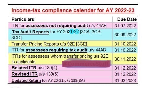 वर्तमान वित्तीय वर्ष के लिए, आयकर ऑडिट की अंतिम तिथि 31 अक्टूबर 2023 है। सभी कंपनियों और व्यक्तियों, जिनकी आय को कानूनी रूप से ऑडिट की आवश्यकता होती है, को यह सुनिश्चित करना चाहिए कि वे इस तारीख से पहले सभी आवश्यक दस्तावेज और विवरण प्रस्तुत करें।