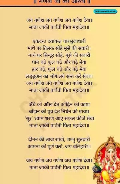 गणेश चतुर्थी का पर्व भारत में बड़ी श्रद्धा और उत्साह से मनाया जाता है। इस पर्व का मुख्य उद्देश्य भगवान गणेश की पूजा करना और उनकी कृपा प्राप्त करना है। गणपति जी को बुद्धि, समृद्धि और भाग्य का देवता माना जाता है। उनके प्रति श्रद्धा व्यक्त करने का एक महत्वपूर्ण तरीका है उनकी आरती गाना।