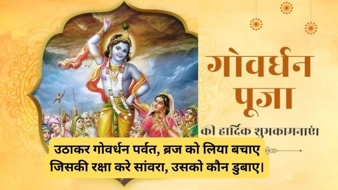पौराणिक कथाओं के अनुसार, जब इंद्र देव ने वृंदावन के निवासियों को अपने क्रोध का शिकार बनाया, तब भगवान कृष्ण ने गोवर्धन पर्वत को अपनी छोटी अंगुली पर उठाकर गांववालों की रक्षा की थी। इस घटना के स्मरण में गोवर्धन पूजा का आयोजन किया जाता है। इस दिन भक्तजन पर्वत के प्रतीक के रूप में गोबर से गोवर्धन बनाते हैं और उसके आसपास पूजा करते हैं।