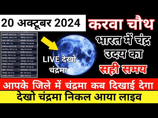 चाँद देखने के लिए आदर्श समय उन दिनों होता है जब चाँद पूर्ण होता है, क्योंकि इस समय इसकी रोशनी सबसे अधिक होती है। आसमान में चाँद के निकलने का समय स्थायी नहीं होता है और यह स्थान के अनुसार बदलता है। उदाहरण के लिए, नई दिल्ली में चाँद 29 सितंबर को शाम को लगभग 6:45 बजे निकलेगा।