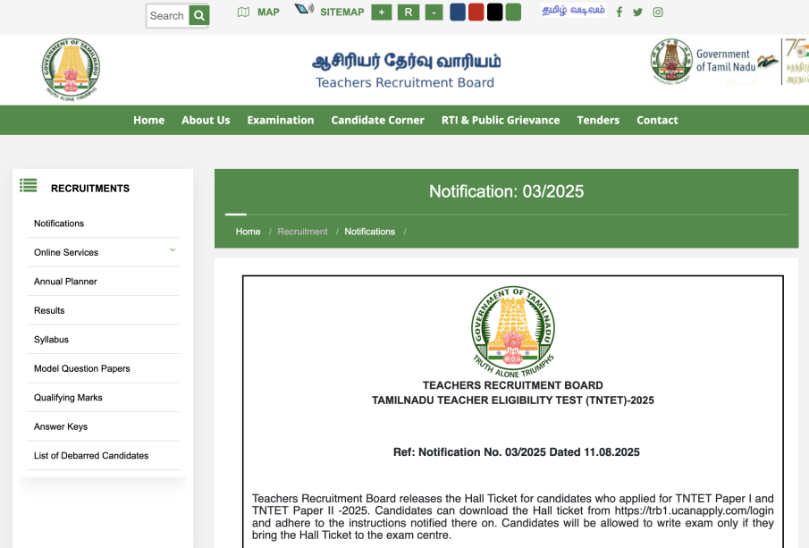 2. हॉल टिकट लिंक पर क्लिक करें: वेबसाइट पर जाकर “टेट हॉल टिकट डाउनलोड” लिंक पर क्लिक करें।