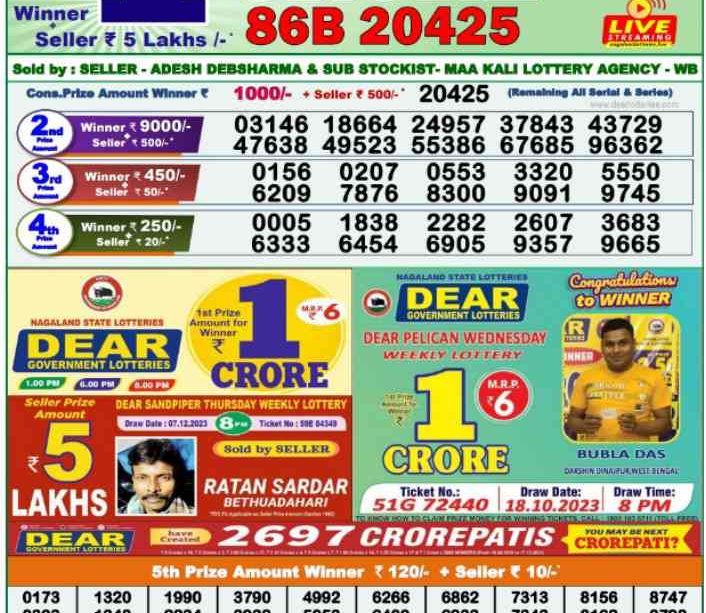 हाल के लॉटरी परिणामों के अनुसार, विभिन्न राज्यों में आयोजित लॉटरी खेलों में नियमित अंतराल पर नतीजे घोषित किए जा रहे हैं। उत्तर प्रदेश, महाराष्ट्र और पंजाब में सबसे अधिक खिलाड़ी भाग ले रहे हैं। 15 अक्टूबर 2023 को घोषित एक प्रमुख लॉटरी के परिणाम ने कई लोगों के सपनों को सच किया, जिसमें पुरस्कार राशि 5 करोड़ रुपये थी। इस लॉटरी में 123456 नंबर का टिकट जीतने वाला घोषित किया गया था।