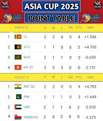 2025 एशिया कप स्टैंडिंग का अद्यतन
