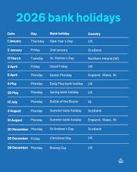 Bank holidays in March 2026 के लिए ग्राहकों को सलाह दी जाती है कि वे: