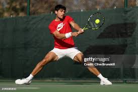 In 2023, Alcaraz demonstrated his exceptional talent at several prestigious tournaments, including his defensive skills and powerful strokes that have earned him comparisons to tennis greats. Notably, he won his first Grand Slam at the US Open in 2022, and this year, he continued to impress by reaching the quarterfinals at the French Open and displaying his prowess on both hard and clay courts.
