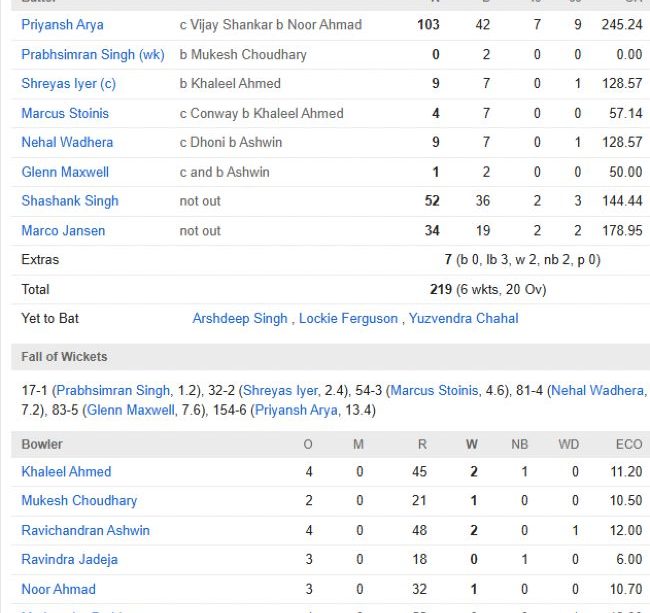 Chennai Super Kings vs Punjab Kings Match Scorecard: PBKS win by 18 runs