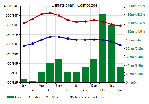 As of October 2023, Coimbatore is experiencing mild weather typical for this time of the year. Daytime temperatures range around 28 to 32 degrees Celsius, while nights cool down to about 20 degrees Celsius. The humidity levels have been moderate, hovering around 70%, which is common in the post-monsoon season. Earlier this month, the city received light rainfall, which has contributed to the greenery and agricultural productivity of the region.