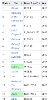 Another contender is ‘RRR,’ a 2022 action drama that has captivated audiences with its spectacular visuals, star-studded cast, and compelling narrative. It grossed over ₹1,200 crores globally and has received numerous accolades, further establishing its place in the highest-grossing ranks.