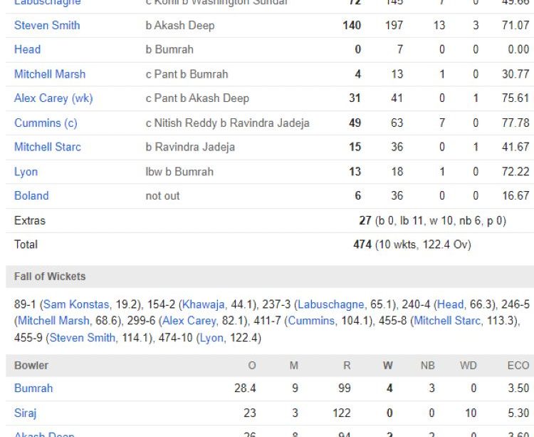 - Bowling Performance: Jasprit Bumrah took 4 wickets for 45 runs
