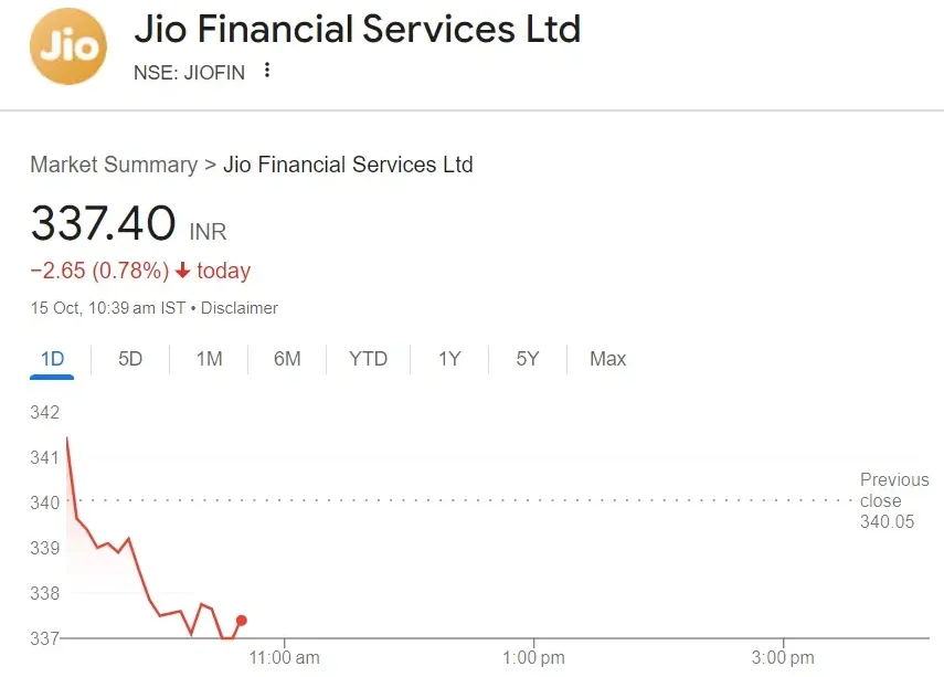 jio finance share price — latest market snapshot and outlook