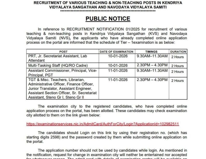 With the conduct of various examinations by KVS (Kendriya Vidyalaya Sangathan) and NVS (Navodaya Vidyalaya Samiti) approaching, the release of the exam city intimation slip has become a crucial point of discussion among aspirants. The exam city slip not only informs candidates about their exam locations but also plays a significant role in their preparation logistics. As the exams draw near, it is essential for candidates to stay updated about all relevant information.