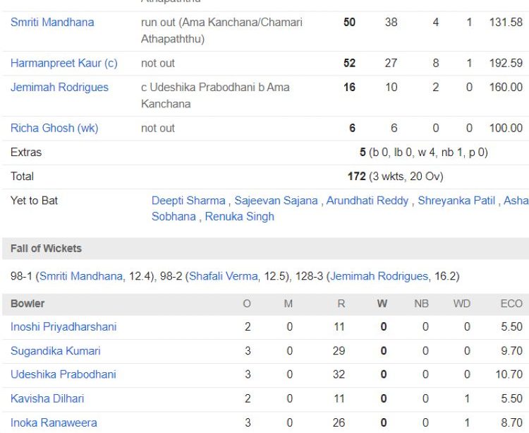 Match Scorecard: Sri Lanka Women vs India Women’s National Cricket Team