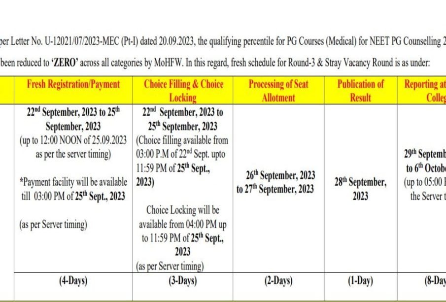 NEET PG Counselling Round 3: राउंड 3 रिजल्ट व रिपोर्टिंग दिशानिर्देश