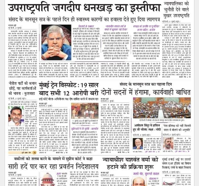 घरेलू खबरों में कानपुर किडनी कांड और हजारीबाग हत्याकांड जैसे संवेदनशील मामले शामिल हैं, जिनमें जांच और न्यायिक प्रक्रिया की प्रगति पर निगाह बनी हुई है। साथ ही, IAS यशपाल मीणा की संपत्ति संबंधी खुलासे की रिपोर्ट्स में उनकी पत्नी के आभूषण और संपत्ति का विवरण सामने आया है।