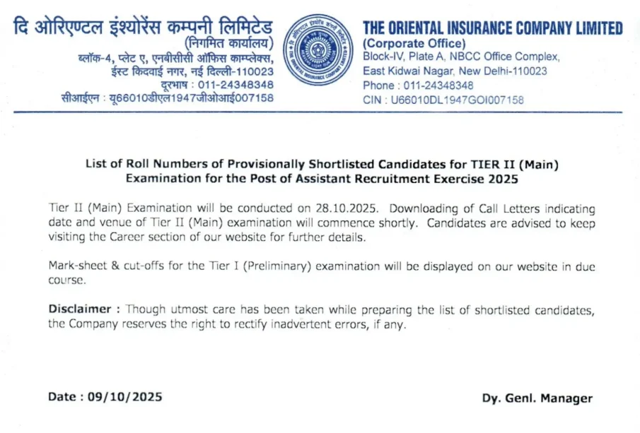 The Oriental Insurance Company Limited (OICL) has recently announced the results for the Assistant recruitment exam conducted earlier this year. The OICL Assistant Result is crucial for many job seekers aiming for positions in the insurance sector, reflecting the growing job opportunities in the industry amidst rising competition.