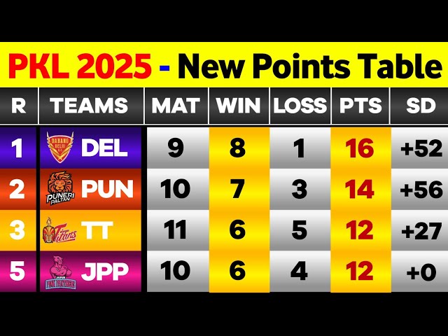 The Pro Kabaddi League (PKL) is one of India’s premier professional kabaddi leagues, drawing millions of viewers and fans each season. The season 2025 is expected to bring exciting matches and fierce competition, making it essential for fans to stay updated with the latest points table. The points table not only signifies team performance but also plays a pivotal role in determining playoff positions and championship aspirations.