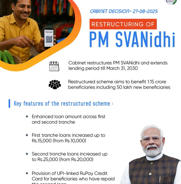 PM Svanidhi योजना के तहत, छोटे व्यापारियों को 10,000 रुपये तक का टर्न ओवर आधारित लोन बिना किसी जमानत के दिया जा रहा है। इस लोन को 1 साल की अवधि के भीतर लौटाना होगा। इसके अतिरिक्त, जो भी व्यापारी समय से लोन चुकाएंगे, उन्हें 7% की सब्सिडी भी मिलेगी। इस योजना से भारत में हजारों छोटे व्यवसायियों को सीधा लाभ मिल रहा है और उनकी आजीविका को सुनिश्चित किया जा रहा है।