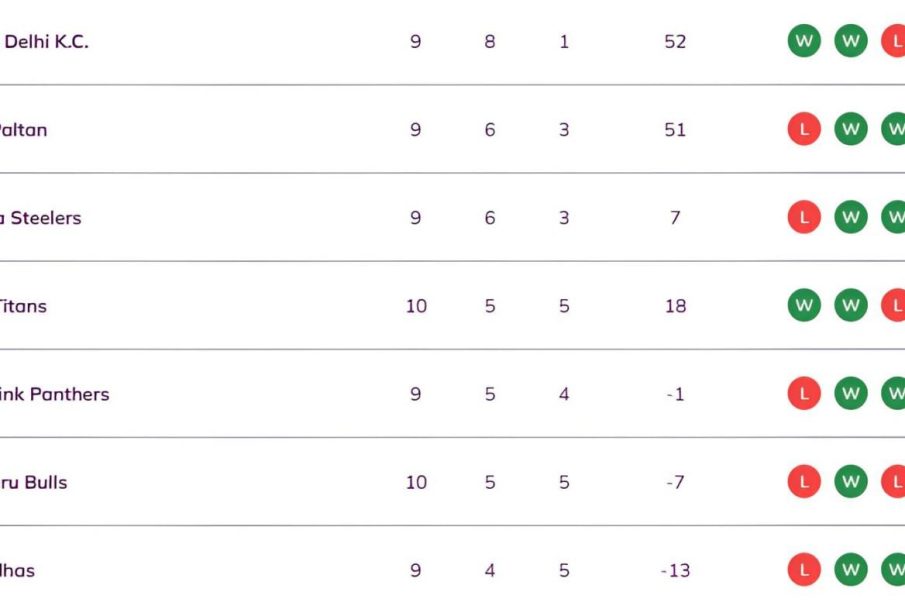 As of mid-October 2025, the points table reflects intense competition among the participating teams. The top teams currently leading the table include the Bengaluru Bulls, Jaipur Pink Panthers, and Dabang Delhi. Each team is showcasing excellent form, with strategic gameplay pushing them forward in the standings.