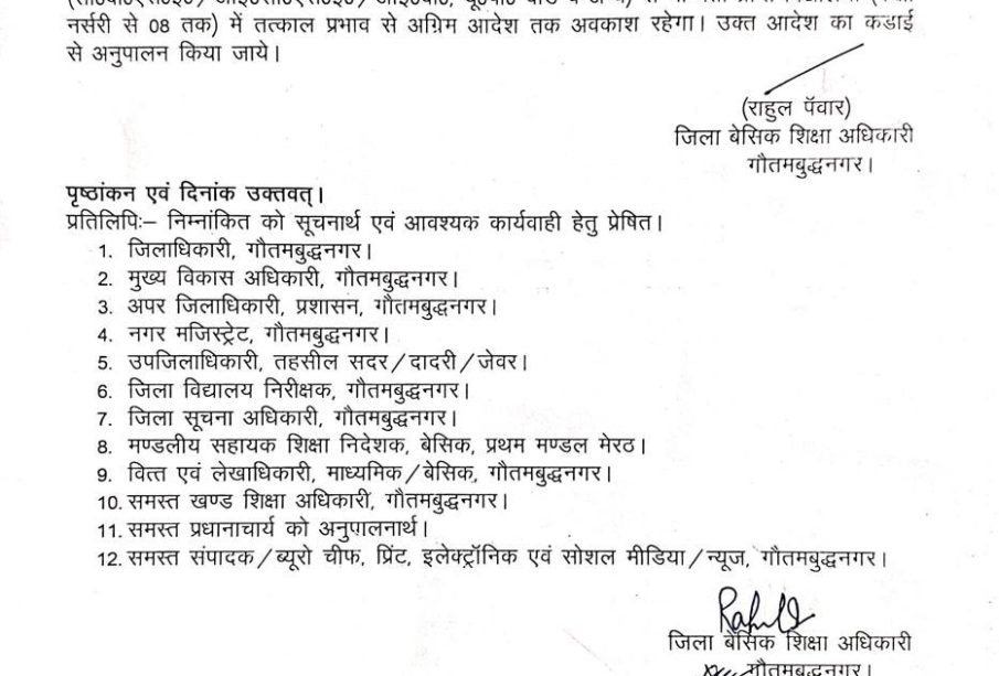 In an urgent announcement, the education department of Noida has declared that all schools in the district will remain closed tomorrow due to adverse weather conditions. This decision has been taken to ensure the safety and well-being of students amid heavy rains and warnings of possible flooding in the region. The closure is a precautionary measure aligning with public safety guidelines that prioritize student welfare during extreme weather.